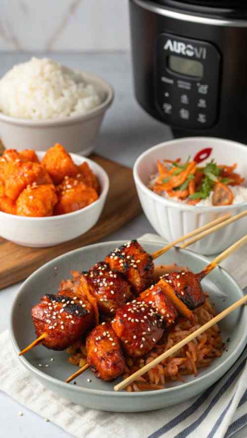 This recipe is a perfect balance of sweet and spicy. The sticky glaze on these skewers makes them a crowd-pleaser. My kids love the sweetness, while my husband enjoys the kick of heat.