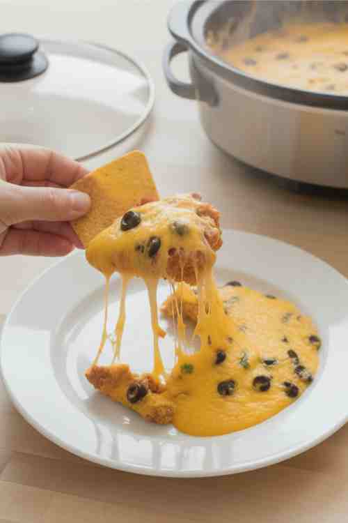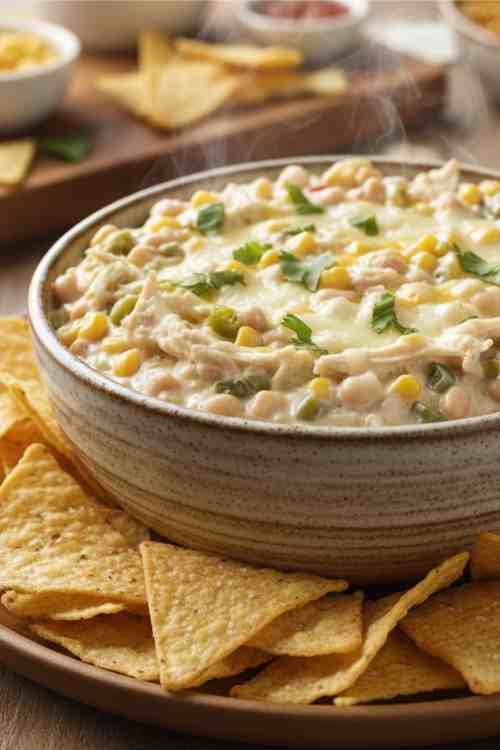 Crockpot White Chicken Chili Dip is a warm, creamy dip made with tender shredded chicken, white beans, green chilies, and melted cheese. As it cooks in the slow cooker, the flavors blend together to create a rich and hearty appetizer that is perfect for parties, game day gatherings, and casual get-togethers. Serve it hot with tortilla chips, crackers, or toasted bread for an easy crowd-pleasing dip.