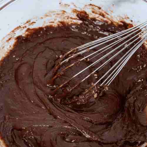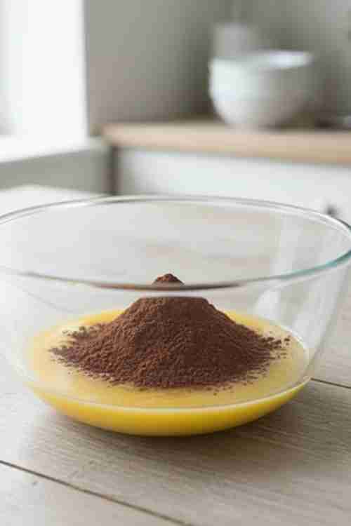 - Melt your butter in a small bowl. Add sugar, cocoa powder, and vanilla extract. Stir it all together until it looks smooth and shiny. This smells amazing already.
