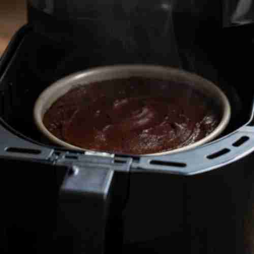 Set your air fryer to 320 degrees F and cook for 12 to 15 minutes. Check at 12 minutes. The edges should look set but the middle still soft and fudgy. It keeps cooking a tiny bit after you take it out.