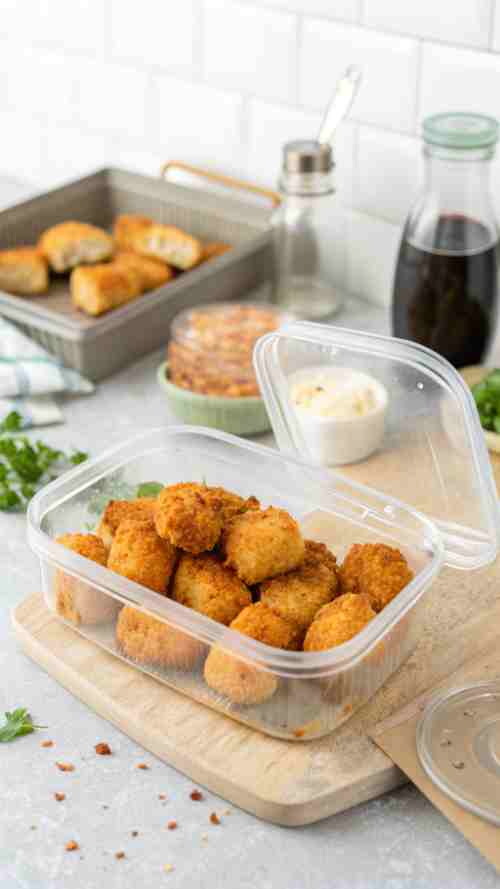 If by some miracle you have leftovers (my teens usually finish everything), these air fryer fish bites keep really well. Just store them right so they stay crispy and fresh.