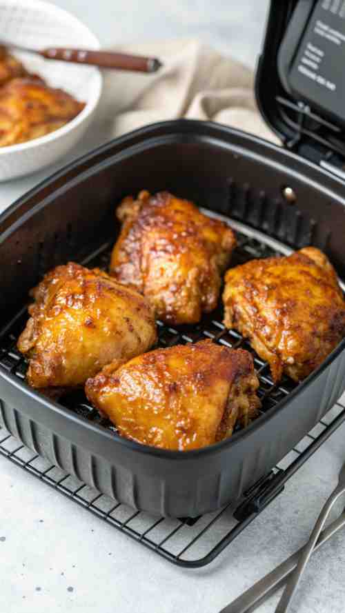 Dry your chicken before seasoning it. Do not overcrowd the air fryer basket, and flip halfway through. Brush on extra honey mustard near the end to get that glossy, caramelized look. This little trick makes your crispy air fryer chicken thighs taste just like real fried chicken.