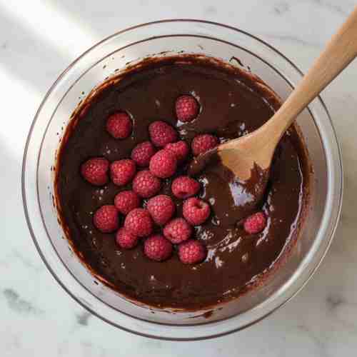 - Gently fold in raspberries. Optional chocolate chips or nuts can be added here too.