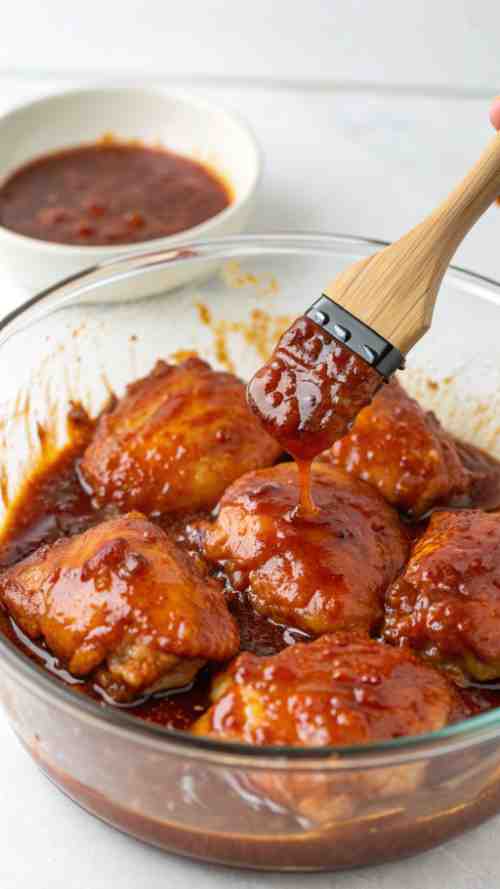 The biggest thing is not to overcook it. I always flip halfway and check around 12 minutes. Bone-in chicken stays more juicy, but a little oil helps too. The glaze also adds moisture and keeps it soft inside.