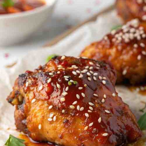 You can also freeze them if you made extra. Put the cooked chicken thighs (without sauce) in a freezer bag and keep them for up to two months. When you are ready to use them, thaw overnight in the fridge and toss them in the glaze after reheating.