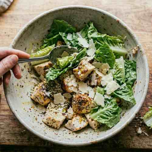 - Mix in caesar dressing until creamy