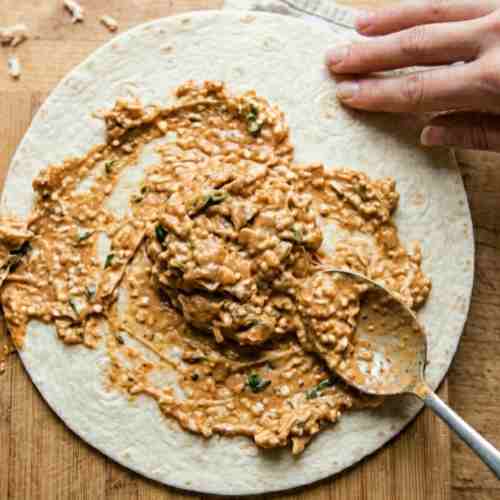 - Spread the filling evenly across each tortilla, leaving a small border around the edges to prevent overflow.