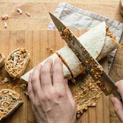 Wrap each rolled tortilla in plastic wrap. Place them in the refrigerator for at least 1 hour. This step is important because it helps the filling set and makes slicing easier. For best results, chill longer if you have time.