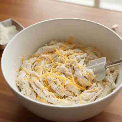 Fold in the shredded chicken gently.