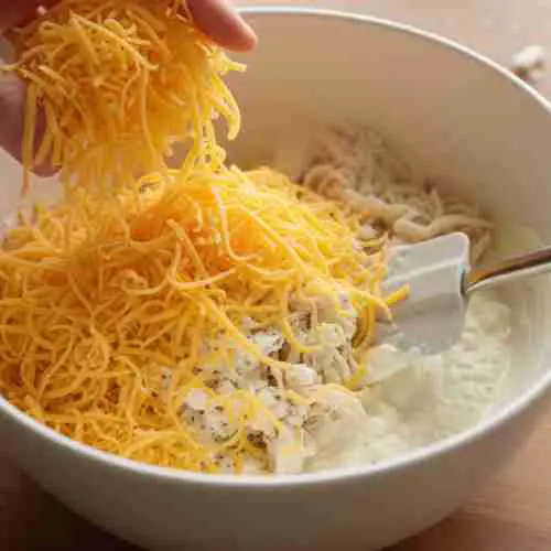 Stir in the shredded cheddar cheese. The mixture should be thick and hearty.
