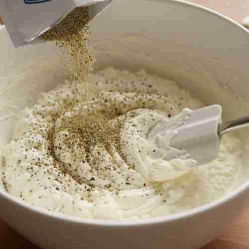 Mix in the ranch seasoning packet. Stir well to ensure the seasoning is fully incorporated throughout the cream base.