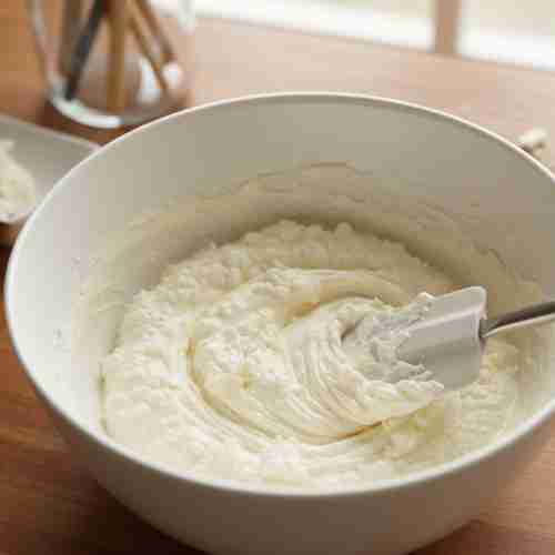- Mix the cream cheese and sour cream in a bowl. It may look lumpy first but it gets smooth.