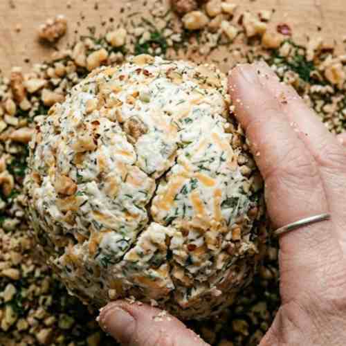 - Roll the cheese ball in chopped nuts or herbs if desired.