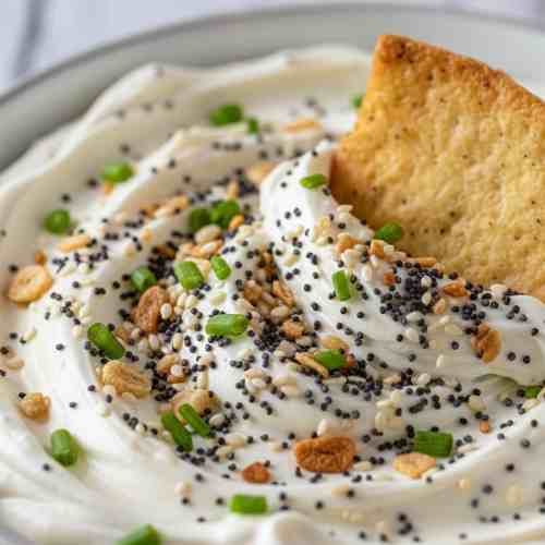 - Transfer the dip to a serving bowl. Sprinkle extra Everything Bagel seasoning on top and add optional chopped chives or green onions.