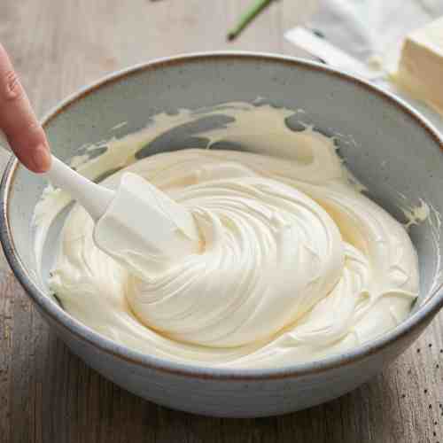 - Place the cream cheese and sour cream in a medium bowl. Stir with a spatula or hand mixer until completely smooth and creamy.