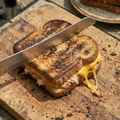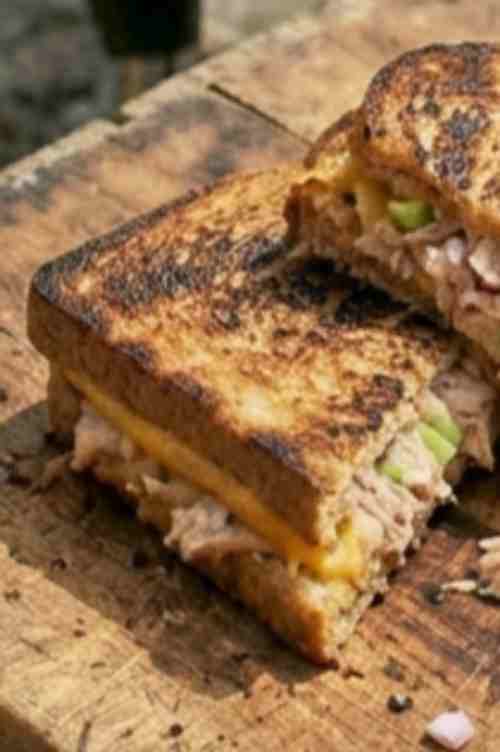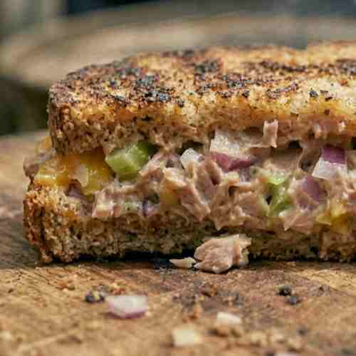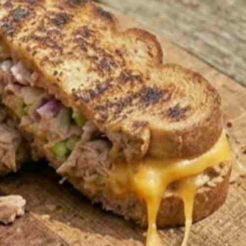 This grilled tuna sandwich is a warm, crispy, and filling meal that is easy to make at home. It has a creamy tuna filling inside and a golden toasted bread outside. Every bite is soft, cheesy, and full of flavor.