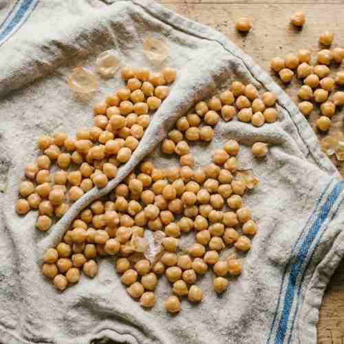 - Rinse the chickpeas under cool running water. Drain well, then spread them onto a clean kitchen towel. Pat them dry thoroughly. Remove any loose skins if desired for better texture.