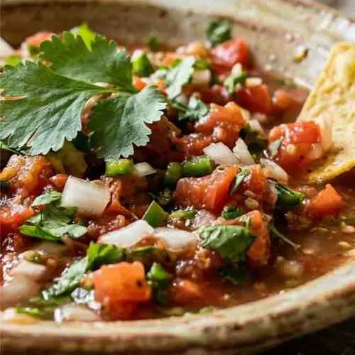 Fresh salsa is a simple and bright dish made with chopped tomatoes, onion, herbs, and lime juice. It brings a clean and fresh taste that works well with many meals. Each bite is juicy, slightly tangy, and full of natural flavor.
