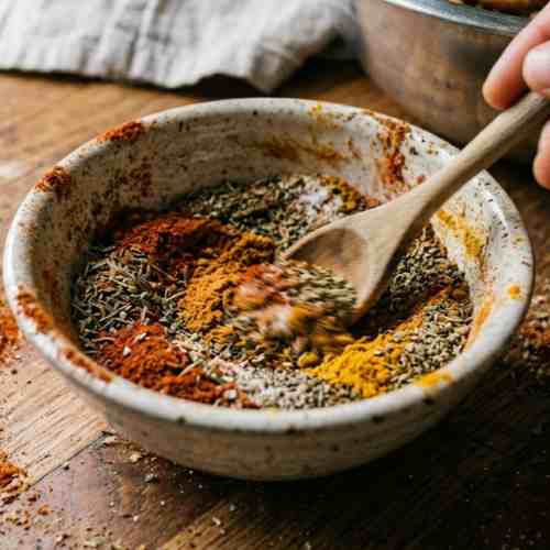 Use a spoon or small whisk to mix everything together slowly. Make sure the spices are fully blended into the oil so there are no dry patches. The mixture should look smooth and evenly colored.