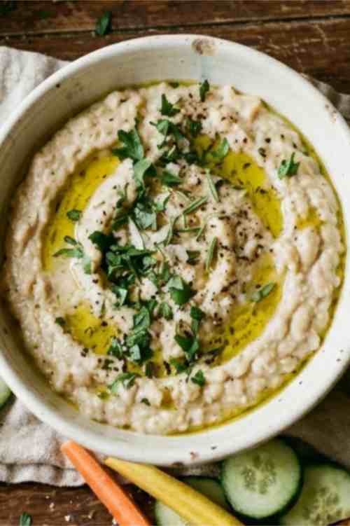 - White beans: Cannellini beans give the smoothest and creamiest texture. Great northern beans or navy beans can also be used.