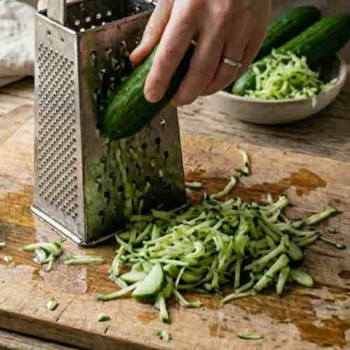 - Grate the cucumber finely using a grater