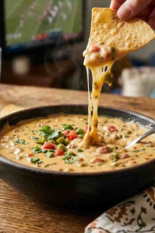 These additions turn the dip into a hearty party queso dip.